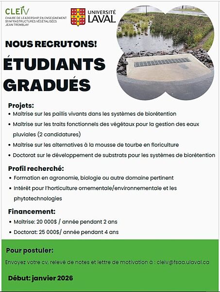 Chaire de leadership en enseignement sur les infrastructures végétalisées Jean Tremblay